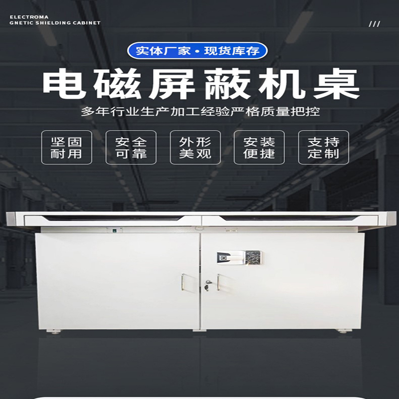 一、核心功能差异 电磁屏蔽桌 电磁防护:通过金属屏蔽层、滤波器等技术,阻断电磁波的传播路径,防止内部设备(如计算机、打印机)的电磁辐射泄漏,同时抵御外部电磁干扰(如无线电信号、雷电干扰),确保设备稳定运行和数据安全。 涉密场景适用:在政府、军事、金融等涉密单位中,电磁屏蔽桌可防止敏感信息通过电磁信号被窃取或还原,满足保密要求(如符合BMB19-2006标准)。 信号净化:配备电源滤波器和信号接口滤波器,滤除电网噪声和设备自身产生的谐波,避免信号干扰导致的数据错误或设备故障。 普通桌子 基础支撑:仅提供放置设备的物理空间,无电磁防护功能,无法阻挡或过滤电磁波。 通用性:适用于家庭、办公室等非涉密场景,满足日常办公、学习需求。